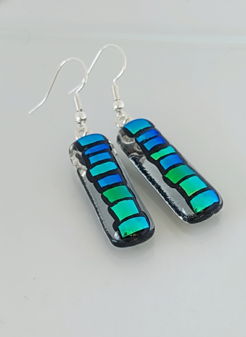 Glass, and in particular, dichroic glass is an amazing medium to work with. The vibrant colours, the way it changes in different light and its versatility makes it perfect for jewellery. The brightness of the different colours and the way those same colours when arranged or layered create beautiful effects that are sure to brighten the day.